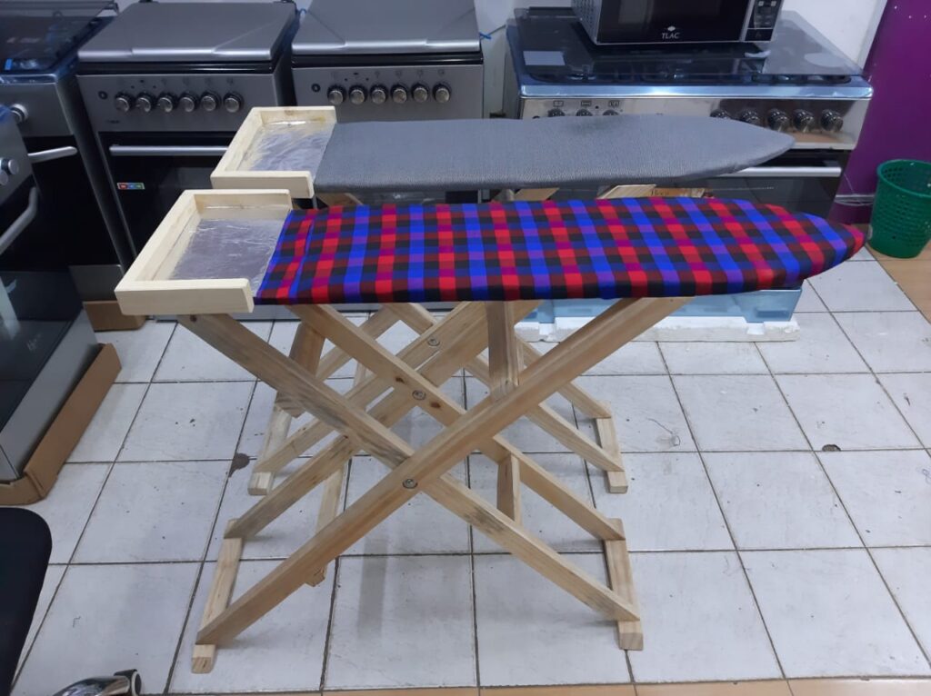 Has a small extension meant for the ironing box during ironing to prevent contact with other fabrics which might cause accidental fires and ultimately damage of the fabrics. Has good height hence you don’t need to bend so much, which is also adjustable. The top is made of spongy material.